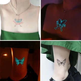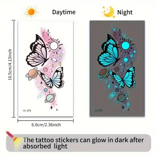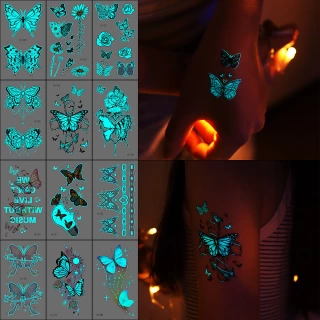 12 Sheets Butterfly Luminous Temporary Tattoo Blue Glow In the Dark Tattoo Sticker For Women Hands Face Tattoo Music Party Decor